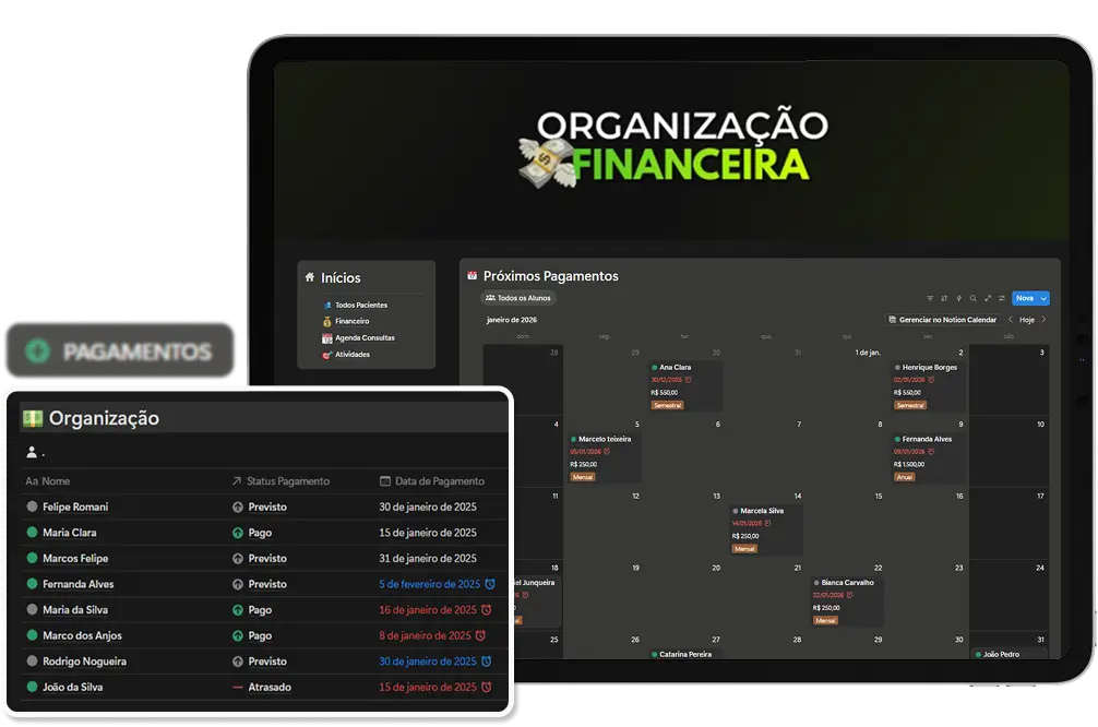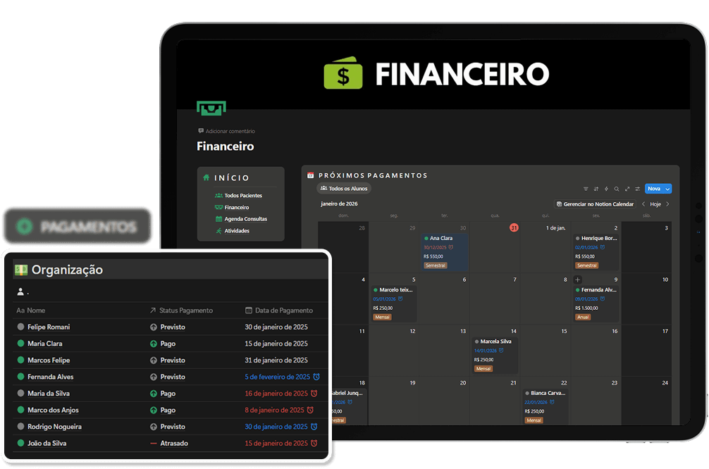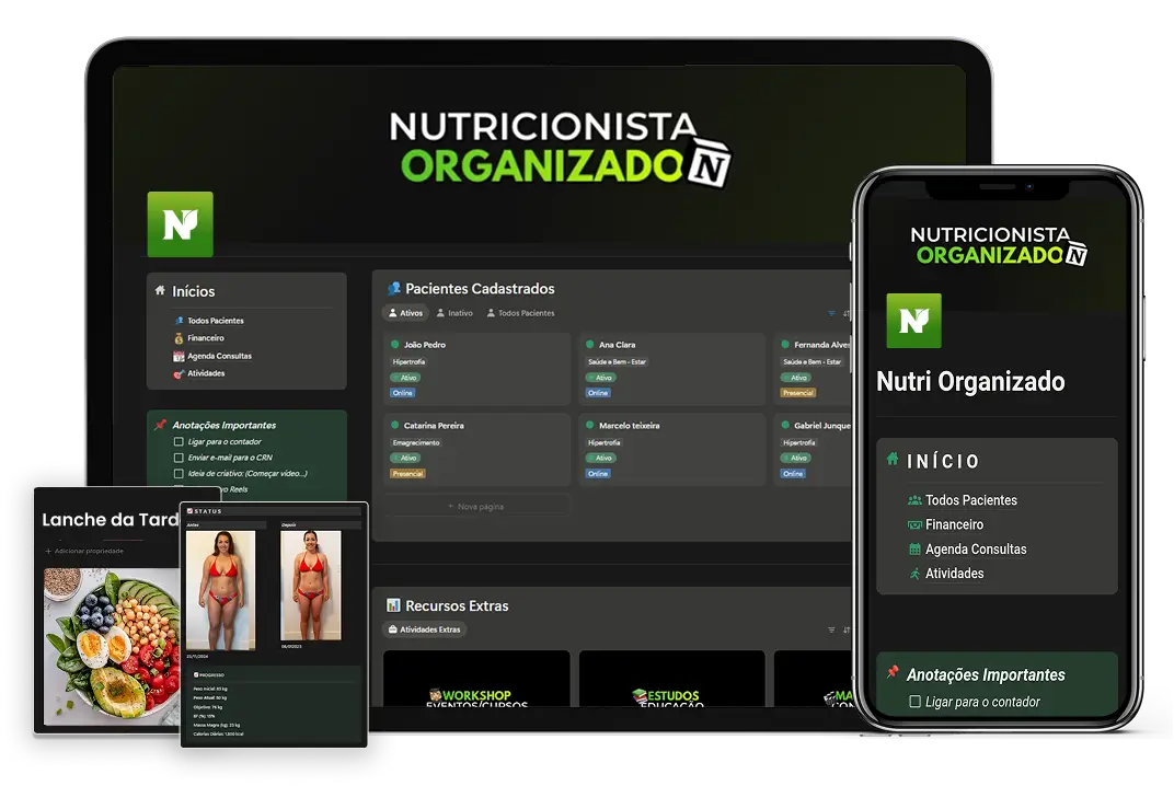 A ferramenta ideal para organização da sua carreira de Nutricionista, que te ajuda a ter uma visão ampla e controle total da sua rotina e pacientes