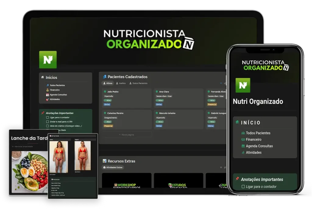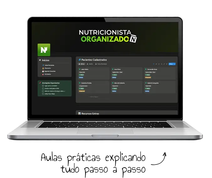 Atendo online e precisava de algo que centralizasse pacientes, dietas e financeiro. O Nutri Organizado resolveu isso de forma muito simples. Hoje tenho controle total do meu consultório dentro do Notion